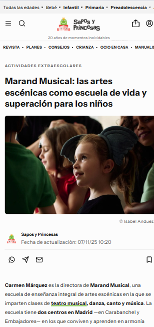 En Marand encontrarás actividades como Teatro Musical, Danza, Música y Canto para niños a partir de los 3 años, jóvenes y adultos.